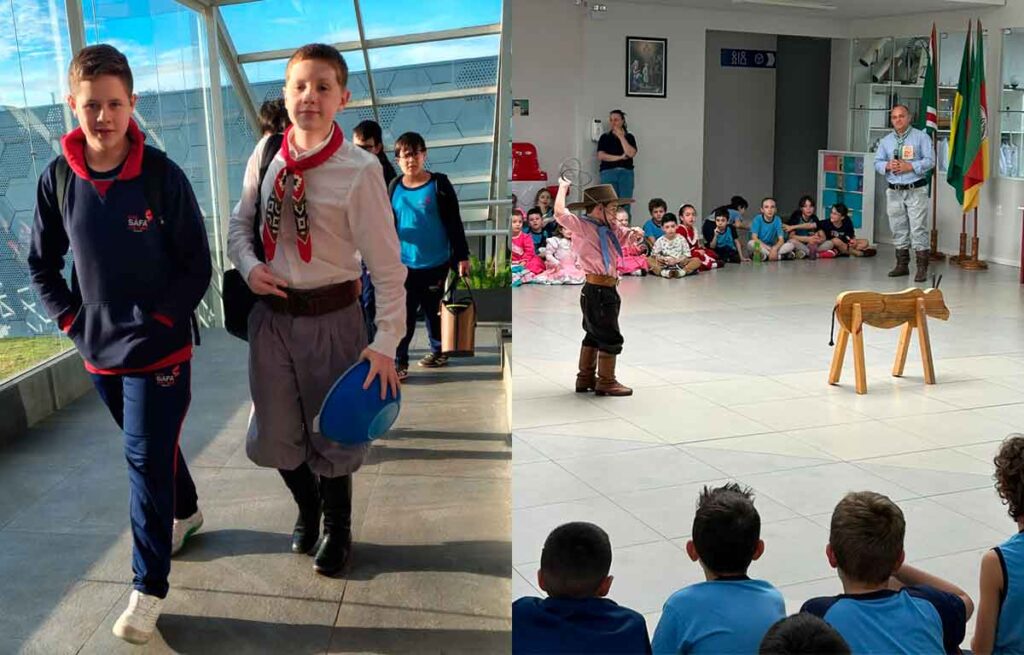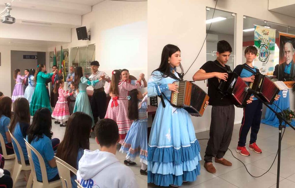 No turno da manhã, os alunos participaram de uma mateada e prestigiaram a apresentação especial do CTG, que trouxe música, danças e causos gaúchos, aproximando ainda mais a comunidade escolar das raízes tradicionalistas.