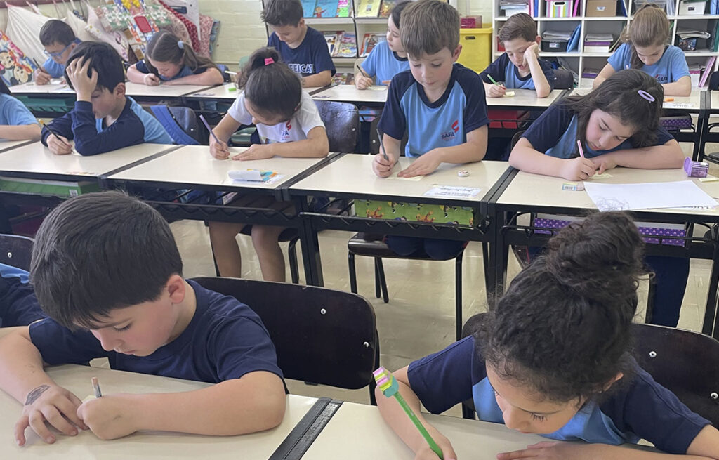 A turma 212 vem utilizando as habilidades de leitura e escrita com muito afinco e entusiasmo. Uma das atividades preferidas dos alunos é a produção de bilhetes para colegas e professores. Além de fortalecer o letramento, essa prática estimula a empatia — já que todos os colegas devem receber bilhetes —, promove a autonomia por meio da escrita espontânea e incentiva a criatividade com recadinhos divertidos e cheios de afeto.