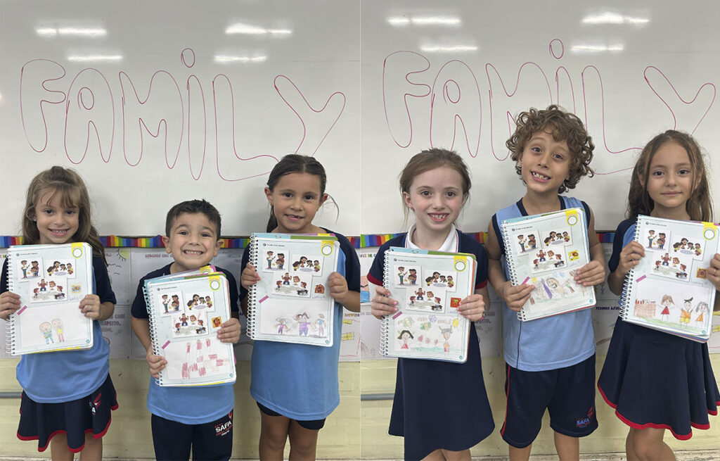 Explorando o tema família, as crianças aprenderam novas palavras por meio de música e momentos de partilha, conectando o conteúdo com a sua própria realidade.