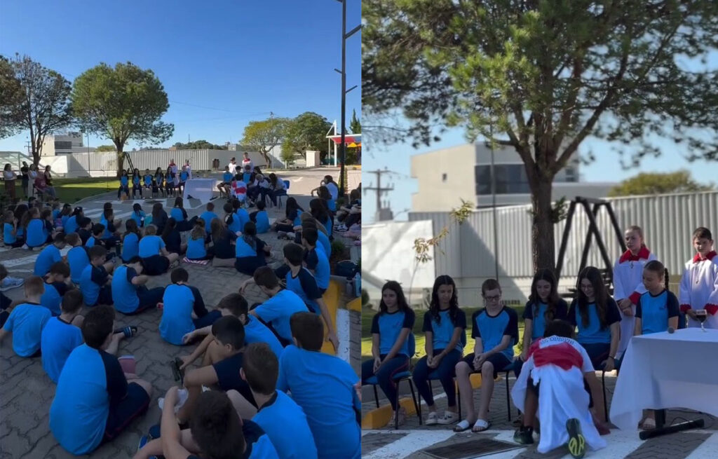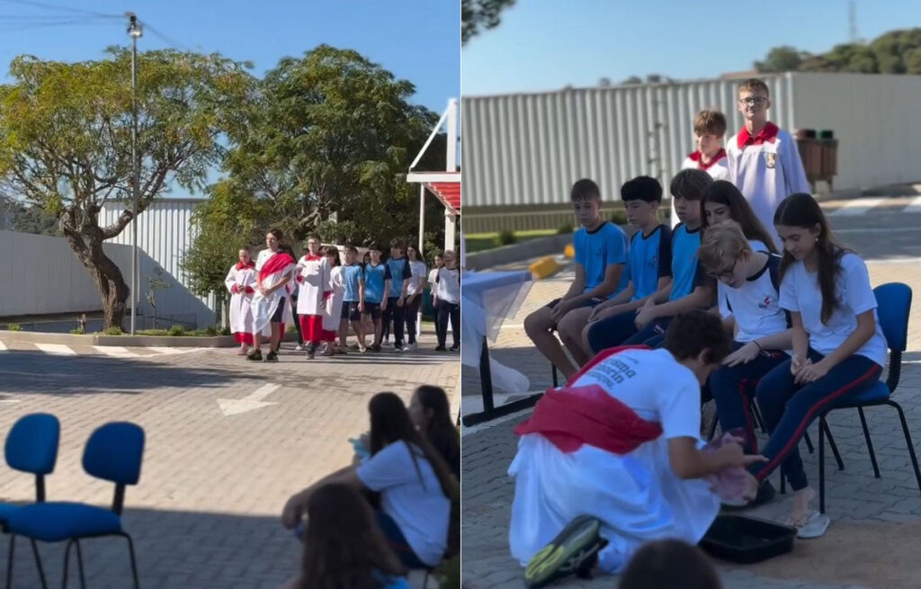 Na quarta-feira e na Quinta-feira Santa (em cerimônia campal), reuniram-se educandos e colaboradores que vivenciaram momentos especiais de espiritualidade. Entre as representações de trechos da Paixão e Morte de Jesus Cristo, o Lava Pés e a Última Ceia foram destaques da apresentação de nossos jovens. Além disso, uma pequena reflexão a respeito de quem vive em situação de vulnerabilidade social, sem moradia e em guerra, efetivou o convite para que todos possamos nos tornar sempre um pouco mais humanizados e cristãos.