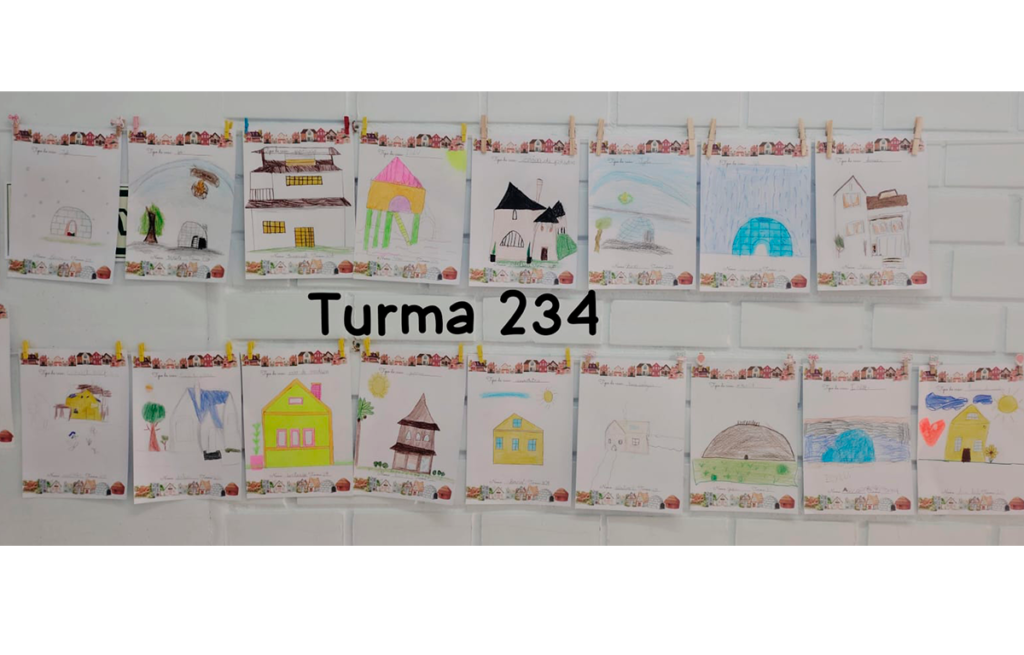 Como forma de expressão, os alunos foram convidados a representar, por meio de desenhos, os diferentes tipos de moradias, valorizando a diversidade e estimulando a empatia. Também trabalhamos a música “Minha Casa”, do grupo Palavra Cantada, trazendo um momento lúdico e afetivo, reforçando o conceito de lar como um lugar especial.