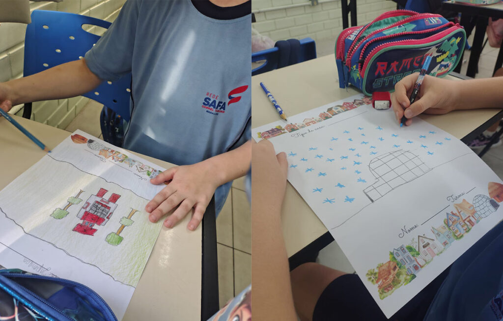 Em seguida, na disciplina de Ensino Religioso, relacionamos o conteúdo com o tema da Campanha da Fraternidade, incentivando os alunos a pensarem sobre o cuidado com o próximo, a solidariedade e o direito de todos a uma moradia digna. Os estudantes ouviram o hino da campanha, momento que despertou sensibilidade e reflexão sobre a realidade de muitas famílias.