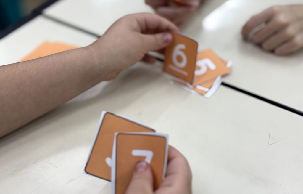 Desta vez, a brincadeira foi com o jogo “Número Escondido”. A cada rodada, os estudantes precisavam pensar rápido e fazer as continhas de cabeça para descobrir qual número estava escondido. Foi um momento de muita concentração, troca de ideias e animação!